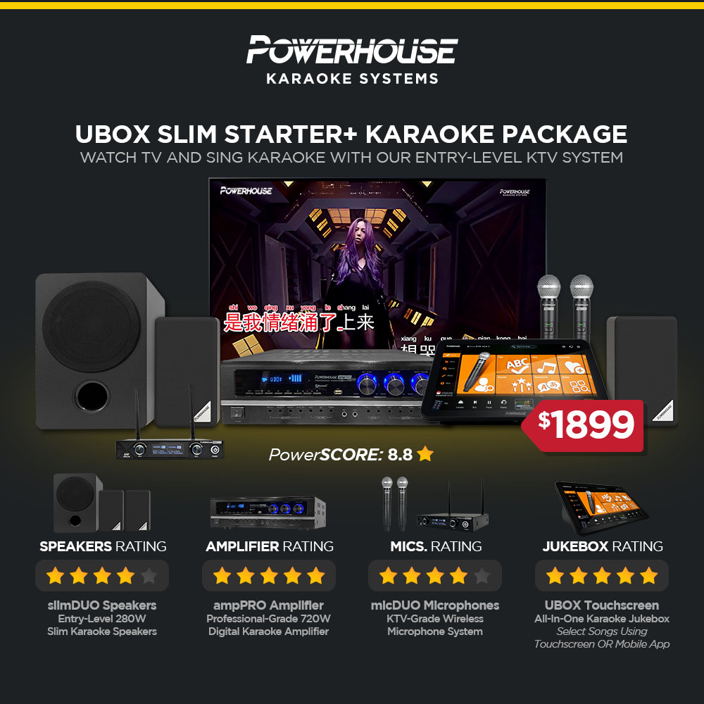 I recommend this package that you see right here is a complete karaoke system set! The sound system can also be connected to your TV, to be used for your movies too. It really feels like we are back in a KTV studio! Thank you Powerhouse!