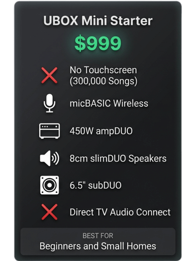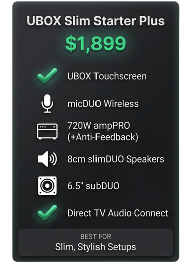UBOX MINI Slim Starter Karaoke System is the entry-level choice of karaoke system for everyone looking to start their home karaoke experience.